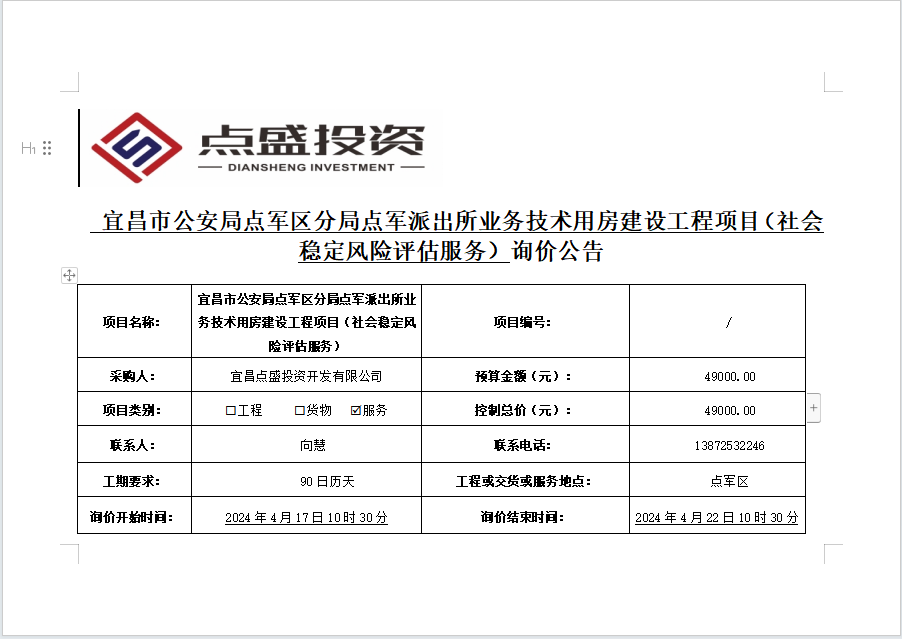 宜昌市公安局點軍區(qū)分局點軍派出所業(yè)務(wù)技術(shù)用房建設(shè)工程項目(社會穩(wěn)定風(fēng)險評估服務(wù))詢價公告