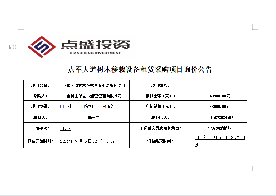 點(diǎn)軍大道樹木移栽設(shè)備租賃采購項(xiàng)目詢價(jià)公告