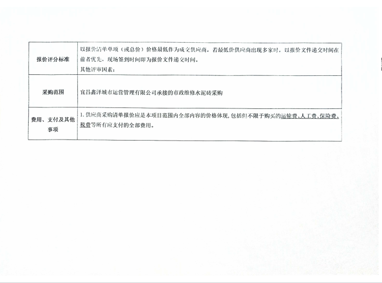 宜昌鑫澤城市運營管理有限公司市政維修水泥磚采購項目詢價公告