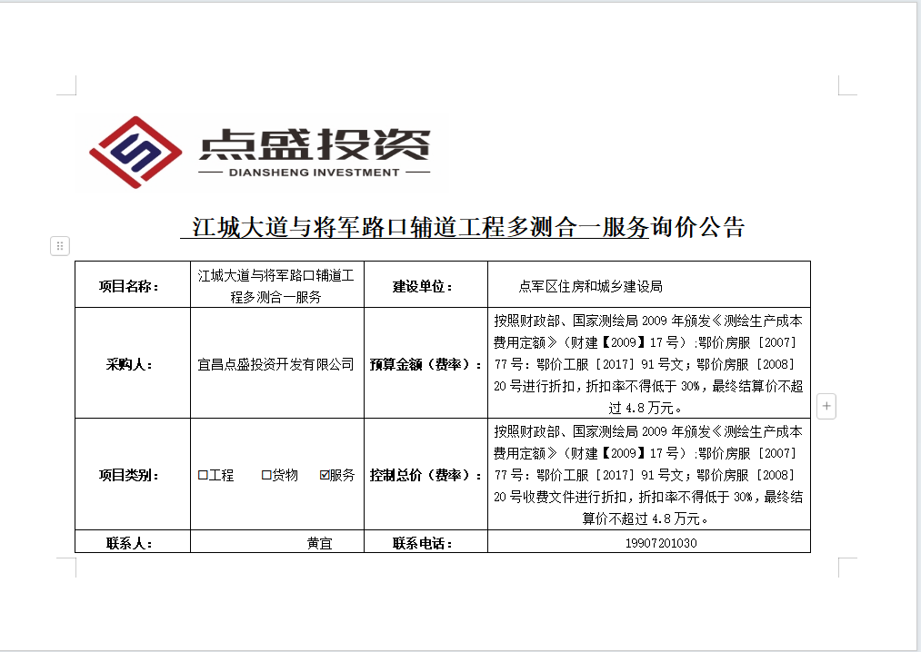江城大道與將軍路口輔道工程多測合一服務(wù)詢價公告
